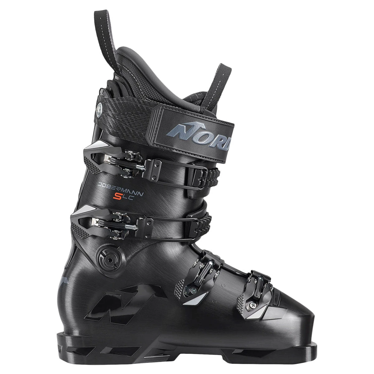 Whether on the race course, carving corduroy, or arcing perfect turns on hardpack, Nordica’s Dobermann 5 Soft LC has a thirst for speed. For decades, the Dobermann has been the boot of choice for World Cup racers and discerning skiers who hold nothing back. The Dobermann 5 Soft LC is steeped in this rich heritage, yet it’s been completely reimagined for even greater performance. Armed with a soft flex, lower cuff, and a 96 mm width, it pairs outstanding power and control with all-day comfort, making it perfect for lighter or shorter racers, up-and-coming junior athletes, and demanding skiers who want to unleash their full potential. Shaped by years of research and refinement, this athlete-driven design provides a more anatomically correct fit, delivering exceptional precision and response to boost your confidence. The Dobermann 5 Soft LC’s shell maximizes the transmission of energy while its Racing Spine offers unrivaled support to create a smooth forward flex that readily absorbs the terrain. And thanks to the streamlined design of the boot’s liner and shell, the Dobermann 5 Soft LC features a reduced length that further enhances your performance. Whether you spend your days laying down beautiful turns or aiming for the top of the podium, Nordica’s Dobermann 5 Soft LC brings your dreams to life.