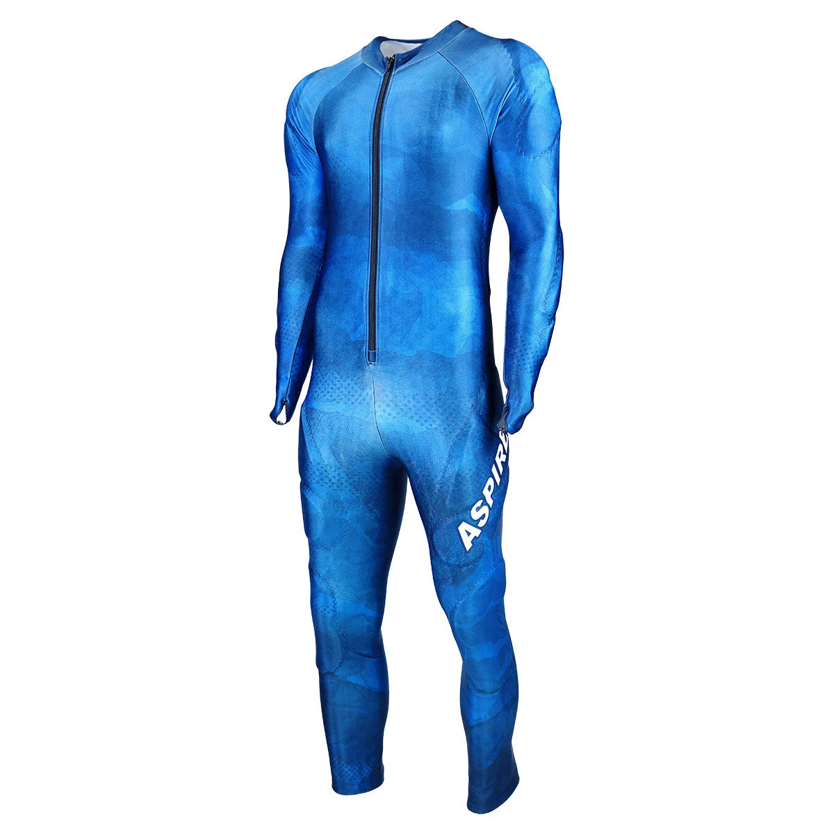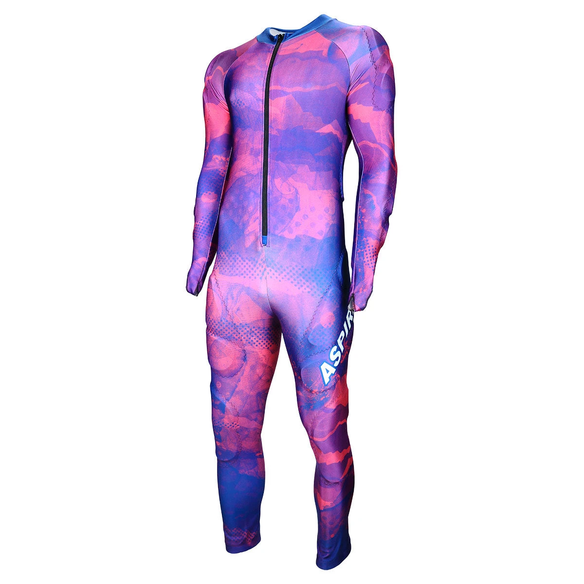 The ASPIRE Adult Level Up GS Suit combines FIS-legal performance with a bold, mountain-inspired look. Made in the USA with SpeedVision fabric that meets FIS 30ml air porosity standards, this suit provides a sleek, aerodynamic fit to maximize speed. The Level Up graphic features an abstract mountain-and-cloud pattern with a camo-like style that blends natural textures with a modern race aesthetic. Integrated ergo-flex pads and a YKK zipper keep racers protected and comfortable through every run.