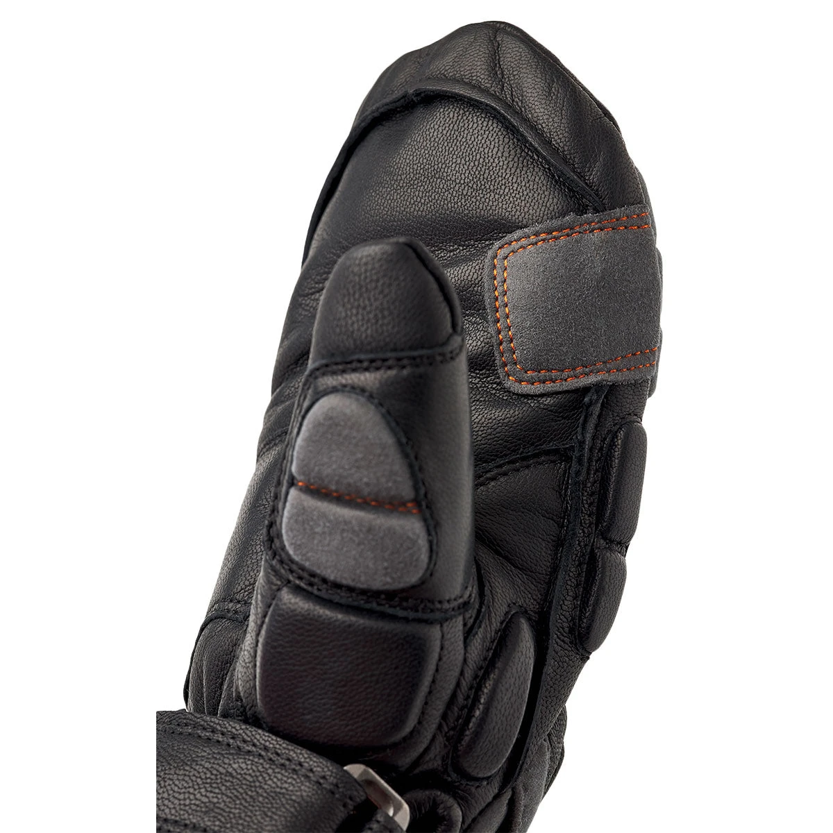 The Hestra Junior Impact Racing Mitt is built for young ski racers who demand warmth, protection, and control on race day. Made from durable, treated goatskin leather, this close-fitting mitten offers excellent grip and flexibility. Shock-absorbing padding on the backhand and fingers shields against gate impacts, while outseam construction enhances comfort and dexterity. Inside, G-Loft insulation and a soft Bemberg fleece lining provide lasting warmth and moisture control, even in cold, wet conditions. With a secure Velcro wrist strap and elastic cuff, this junior race mitten is ideal for slalom and giant slalom training and competition.